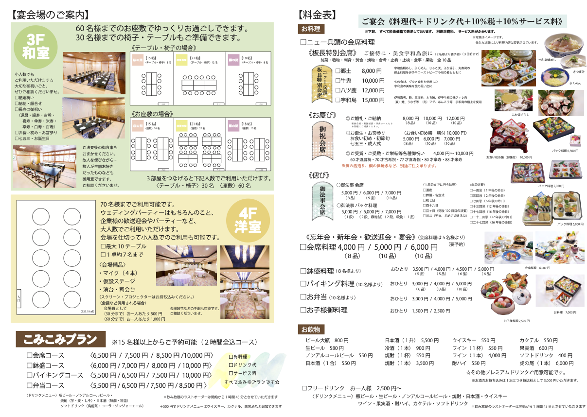企業様の歓送迎会やパーティーなど